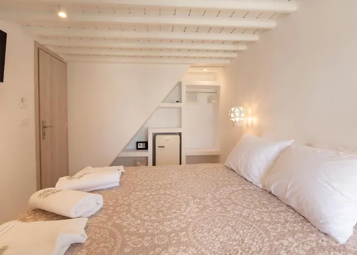 Para sua conveniência e conforto, o apartamento está equipado com máquina de café/chá, refrigerador e artigos de vidro. O Mylos Suites está situada a 5 minutos de carro do aeroporto de Miconos. A presença de jacuzzi e banheira quente no Mylos Suites também contribui para uma estadia mais agradável.